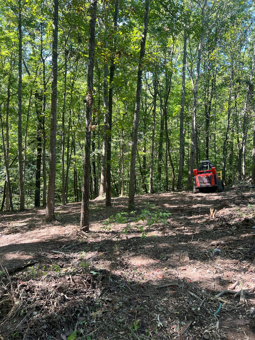 This residential forestry mulching project was located in pegram Tennessee just outside of Nashville Tennessee. The project included forestry mulching 4 acres of heavily wooded area taking down 8 inch diameter material and smaller material as well and mulching all of the material on site in preparation for a soil test. This process does not disturb the dirt underneath or dig up any material so it is suitable for a new build site. This job took approximately 3 days of work.